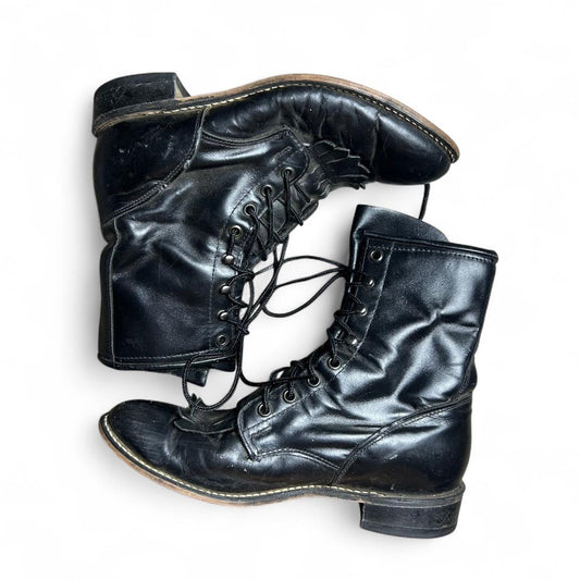 Black Leather Combat Boots size 6.5 - Vintage Lace-Up Logger Boots