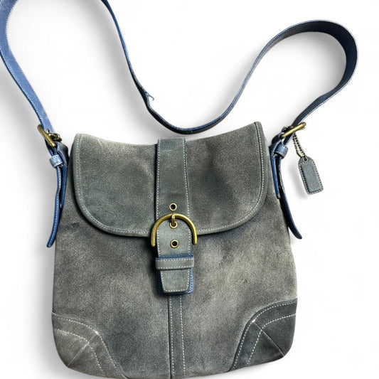2004 Rare Vintage Blue Coach Suede Leather Soho Crossbody Bag - Gold Hardware Monogram