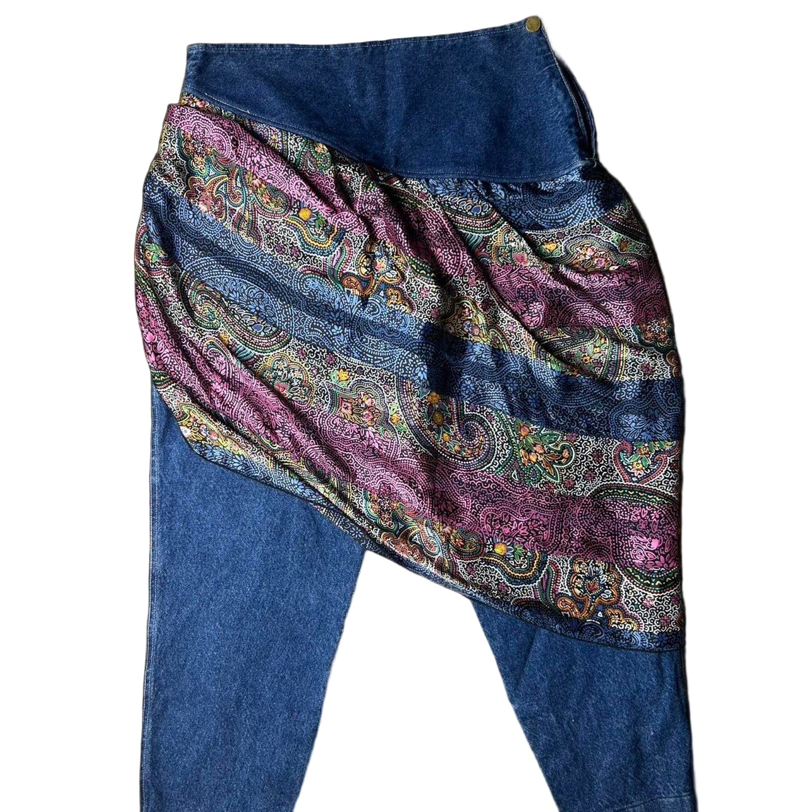 Step back into the iconic era of the 1980s with these unique Z. Cavaricci euro jeans! These vintage jeans feature a distinctive attached skirt, adding a stylish and edgy twist to a classic design.