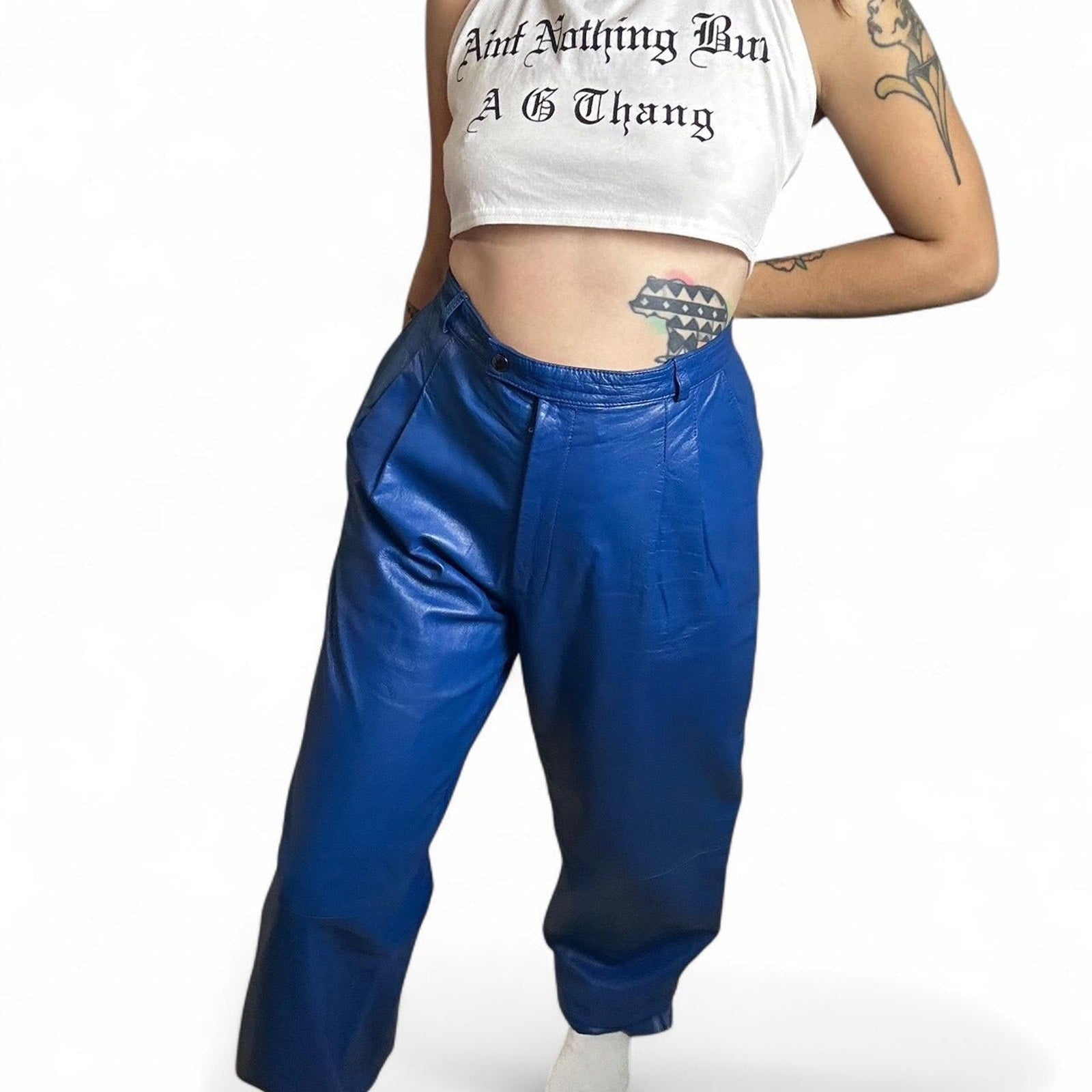 4 openers brand Blue leather high-waisted pleated straight-leg pants 32X36 ’s