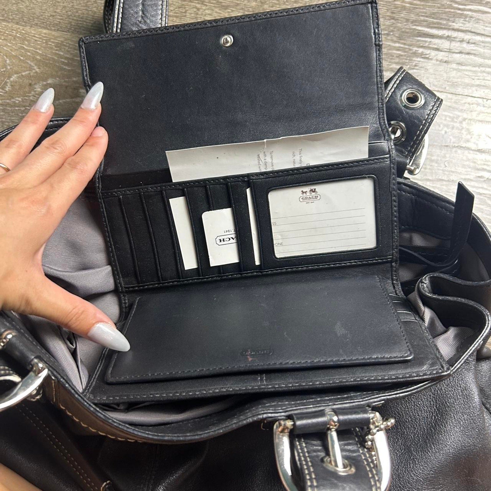 - Matching Wallet: Coordinating black leather wallet with pleated details