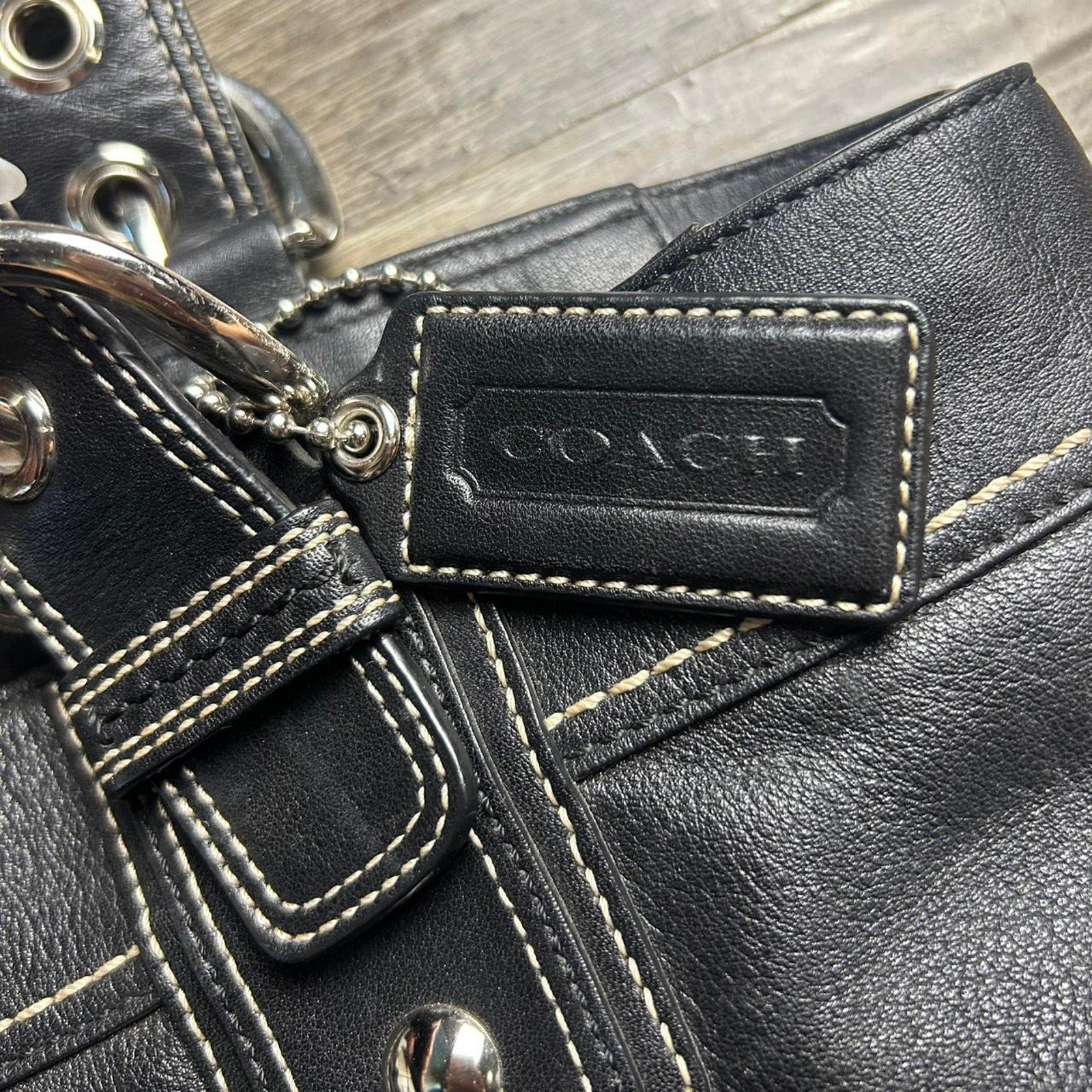 The pleated leather design is what makes this Coach Soho set truly special. The gathered texture adds visual interest and dimension to the sleek black leather, creating an elegant yet practical everyday bag. The matching wallet completes the look, giving you a coordinated designer set.