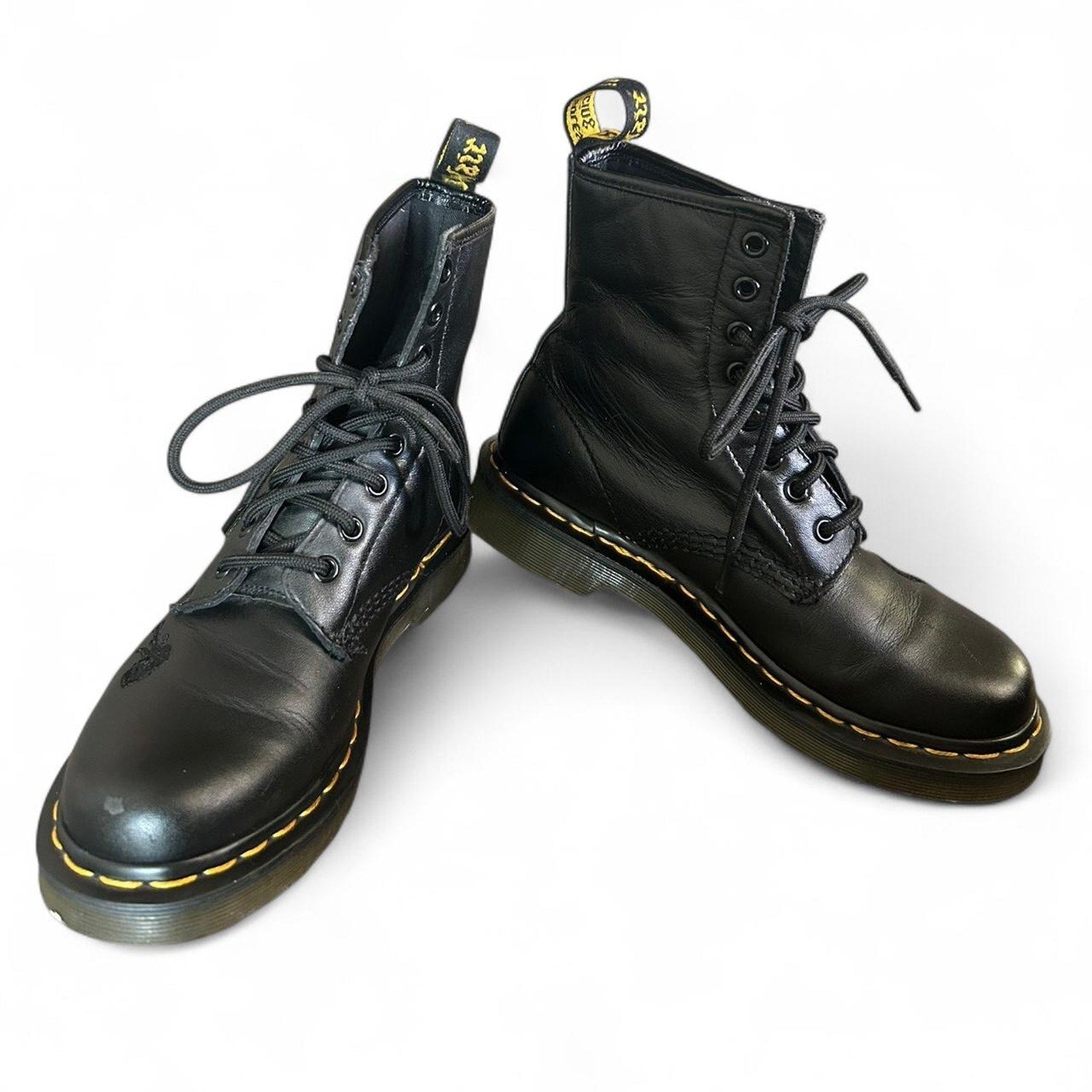Black Dr. Martens 1460 mono boots with black rose embroidery