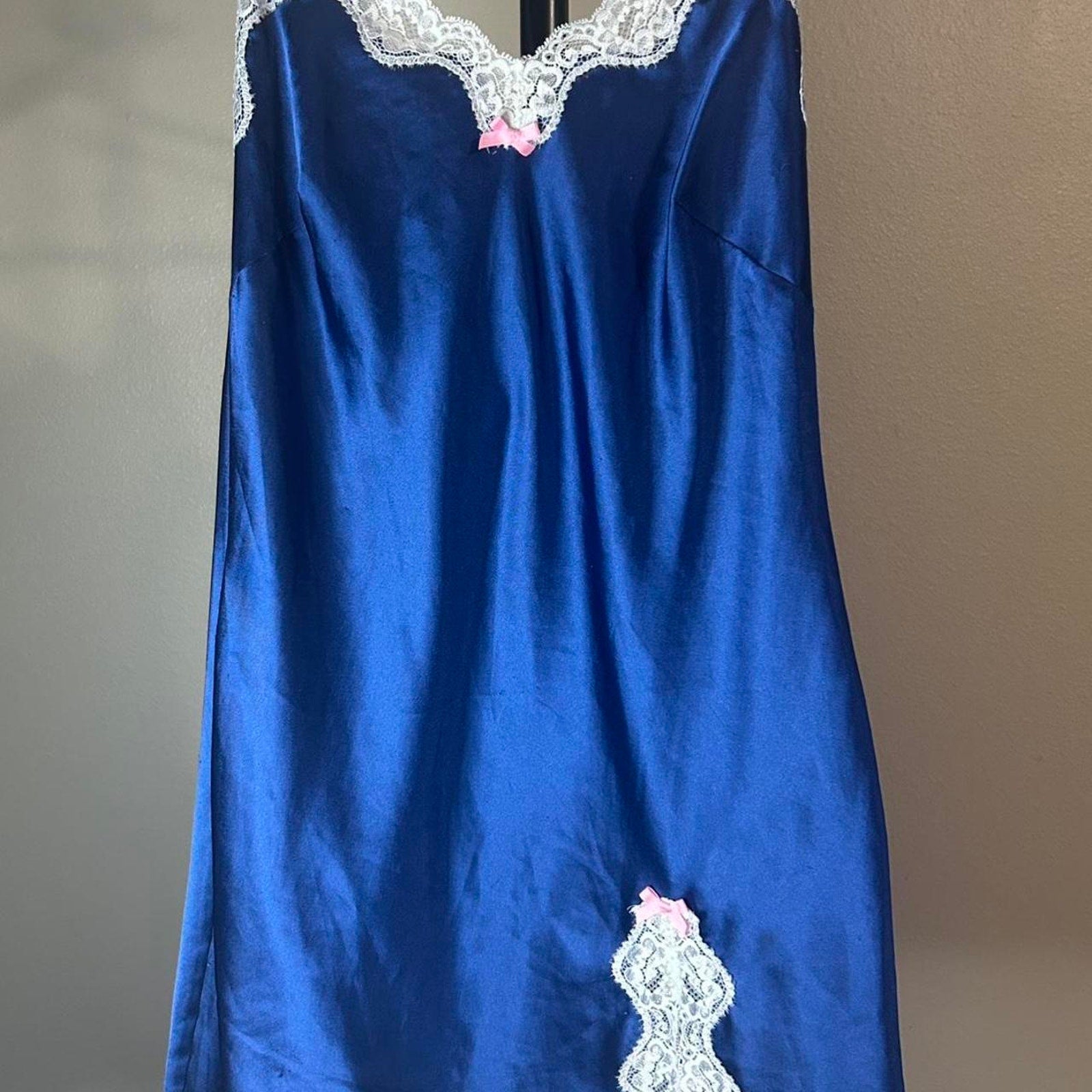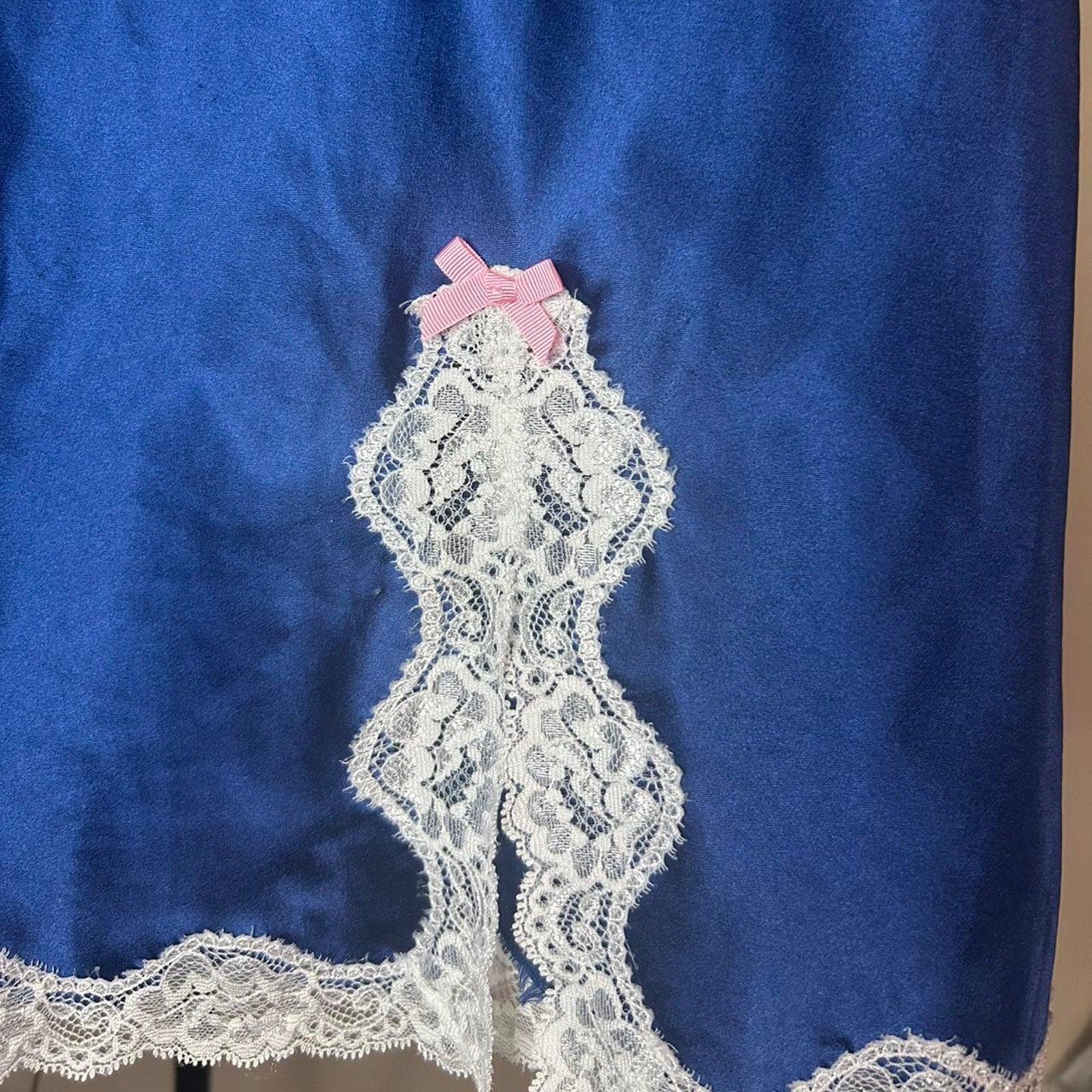 Vintage Victoria secret Blue silk and white lace slip dress with a touch of charm