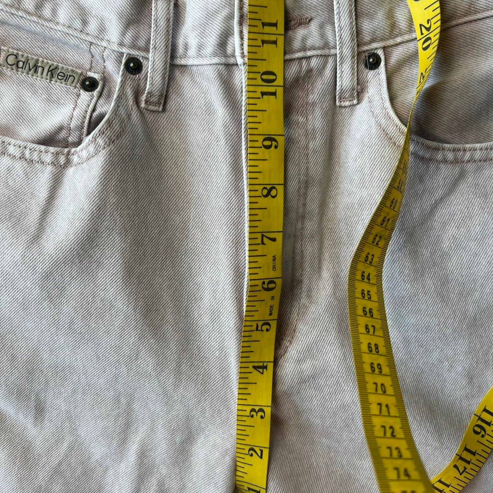 These are a pair of vintage Calvin Klein Jeans in a tan color. They are size 26x30.