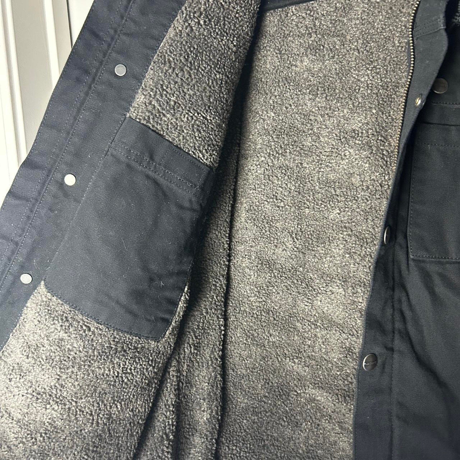 Carhartt black hooded Sherpa lined jacket snap and zip closure size s