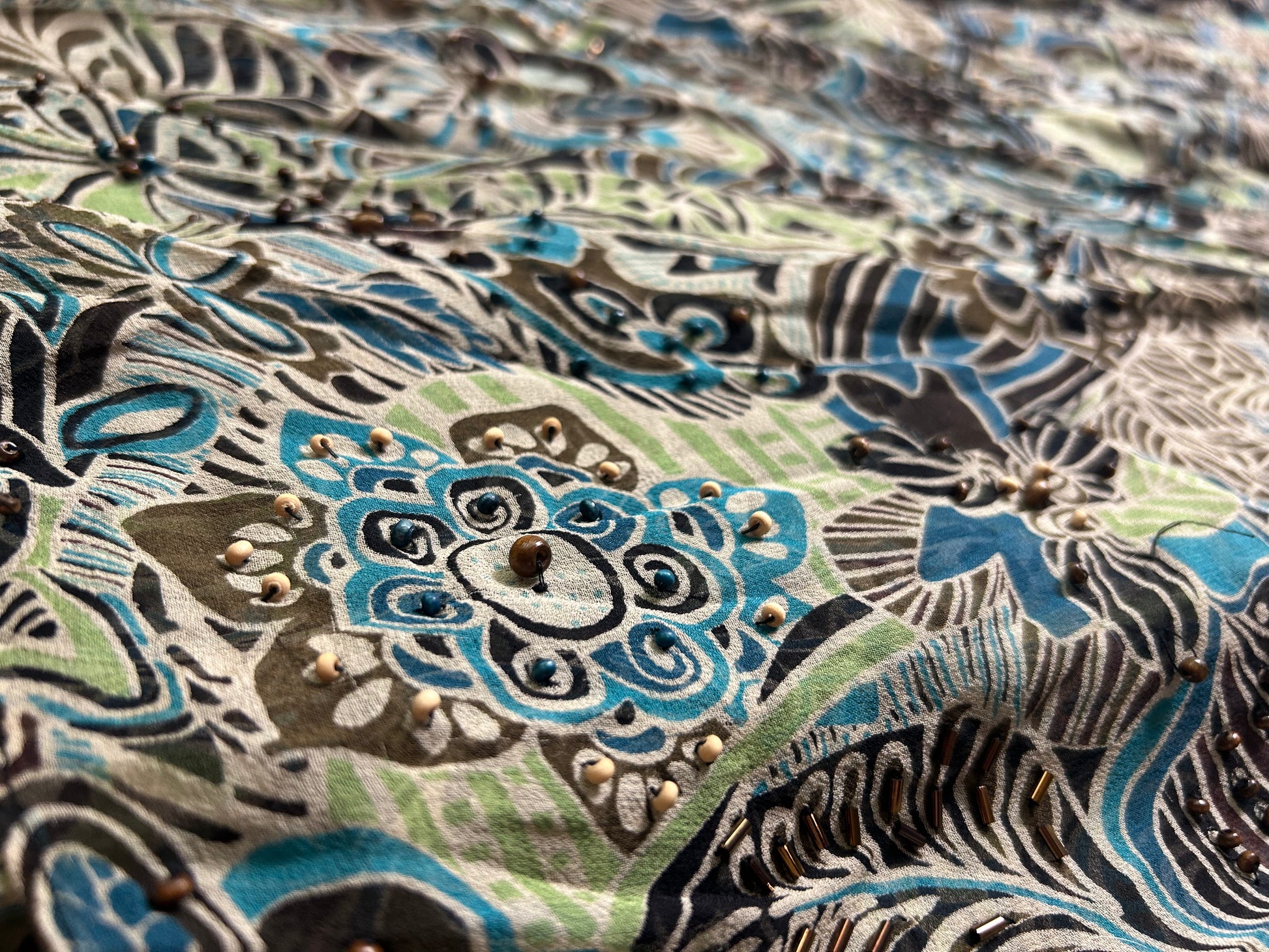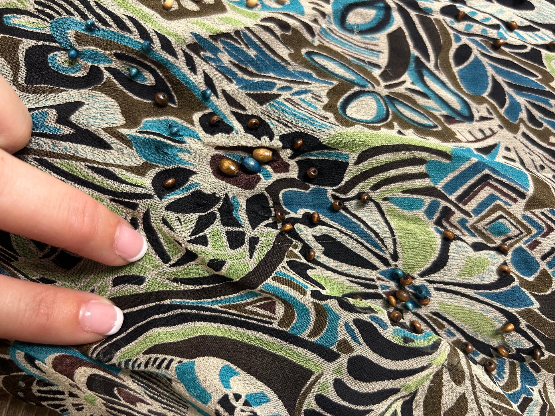 - Intricate beaded detailing adds artisanal texture and sparkle