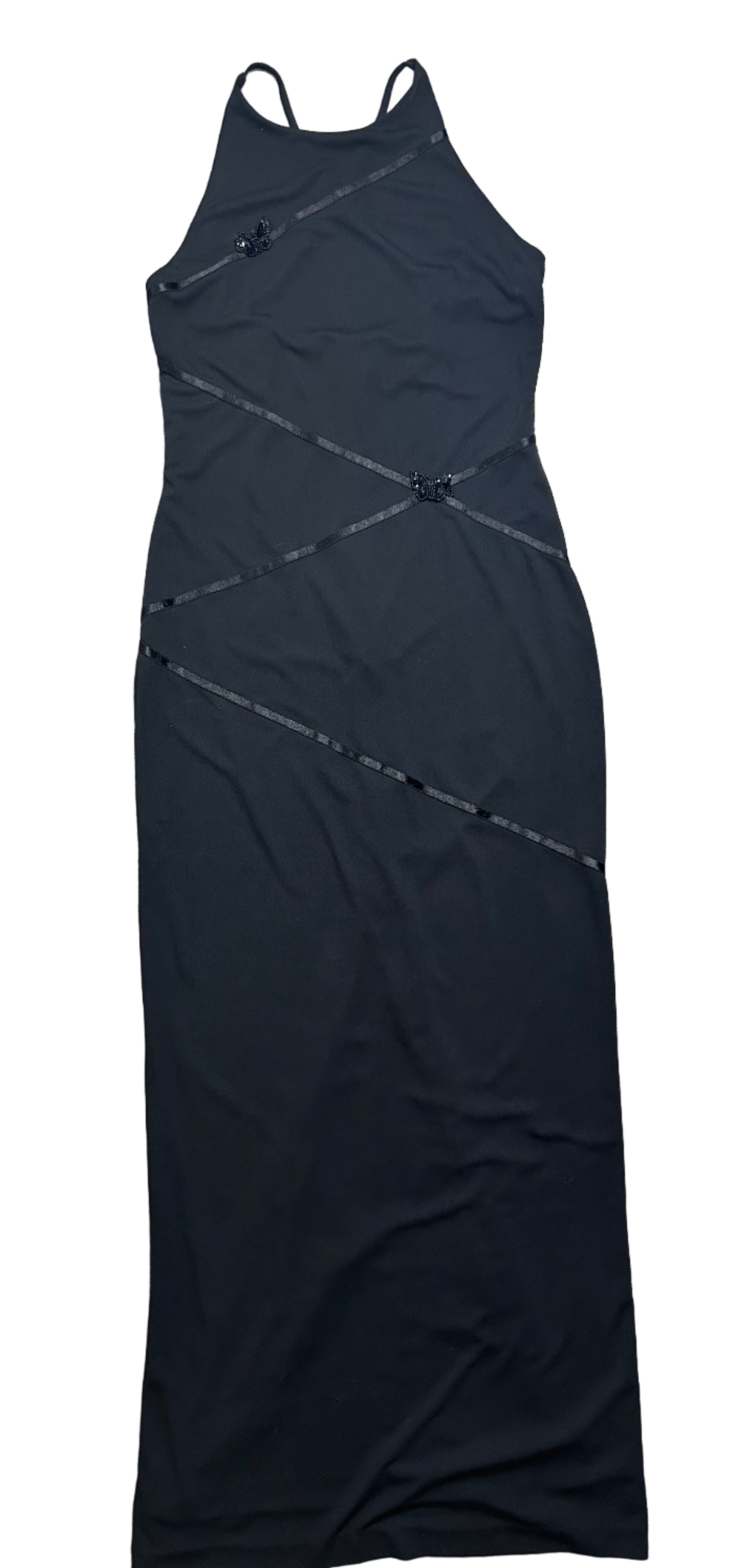 Make a statement in this stunning J.R. Nites by Caliendo Y2K formal dress featuring exquisite beaded butterfly embellishments and elegant ribbon details. This vintage gem is perfect for the edgy girl who loves mixing luxury with nostalgic Y2K glamour.