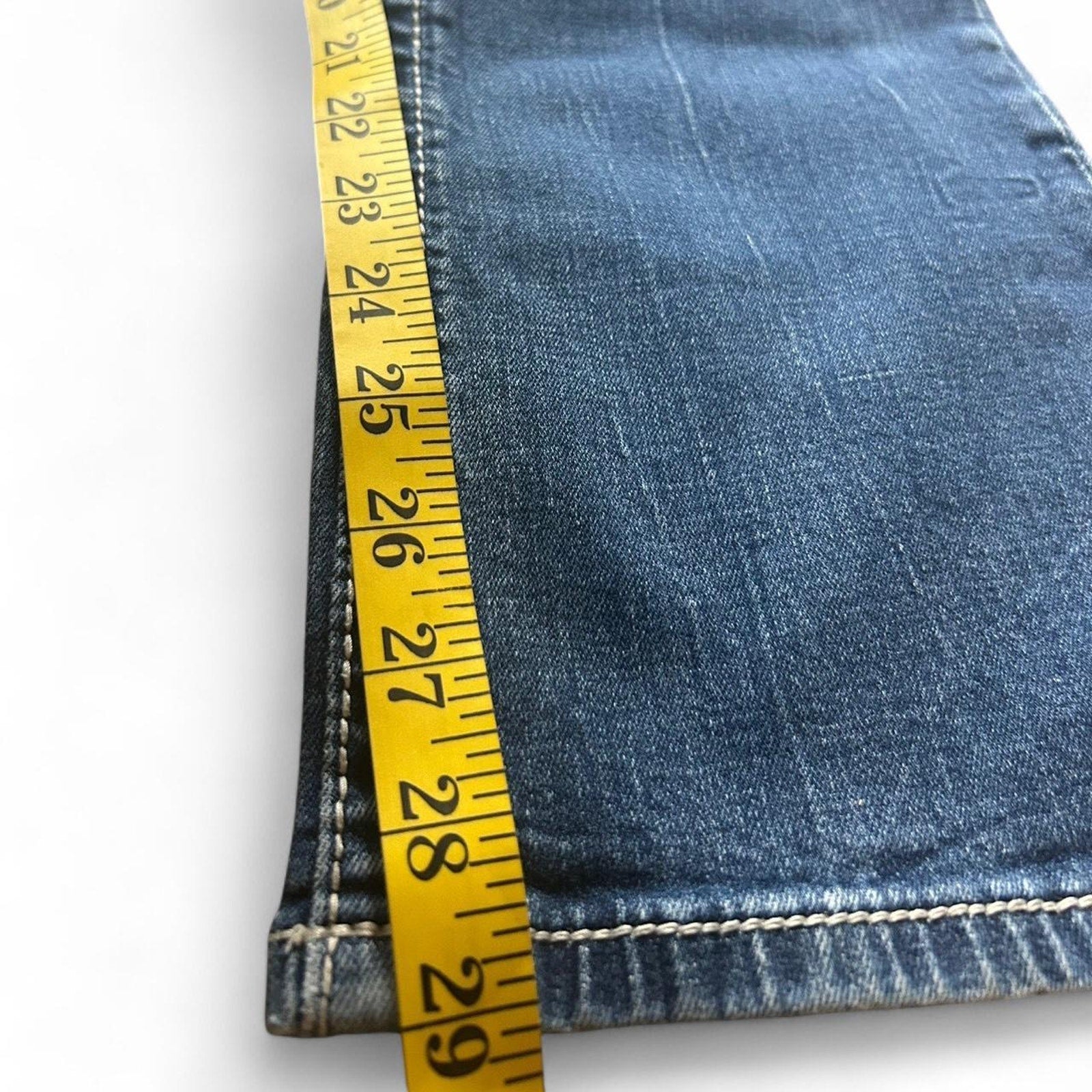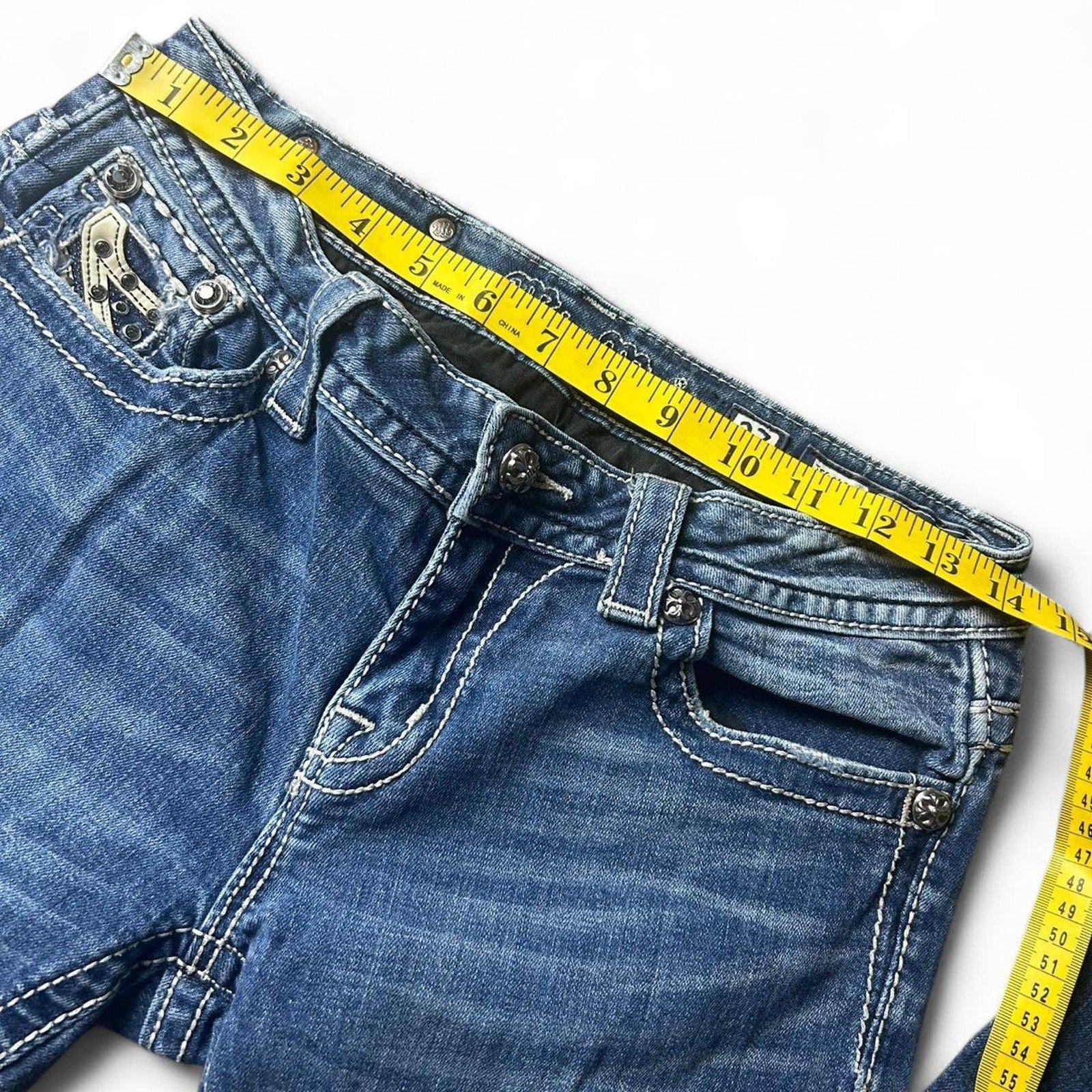Miss Me blue and white bootcut jeans JE6063E4R easy bootcut denim with leather details, rhinestones, and flap pockets