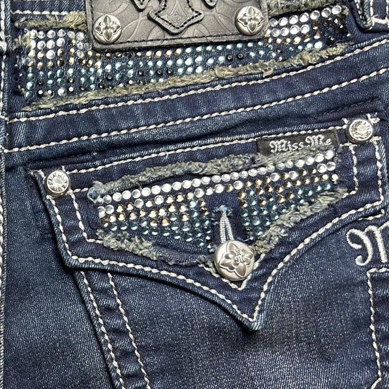 Miss Me blue bootcut jeans with rhinestone embellishments