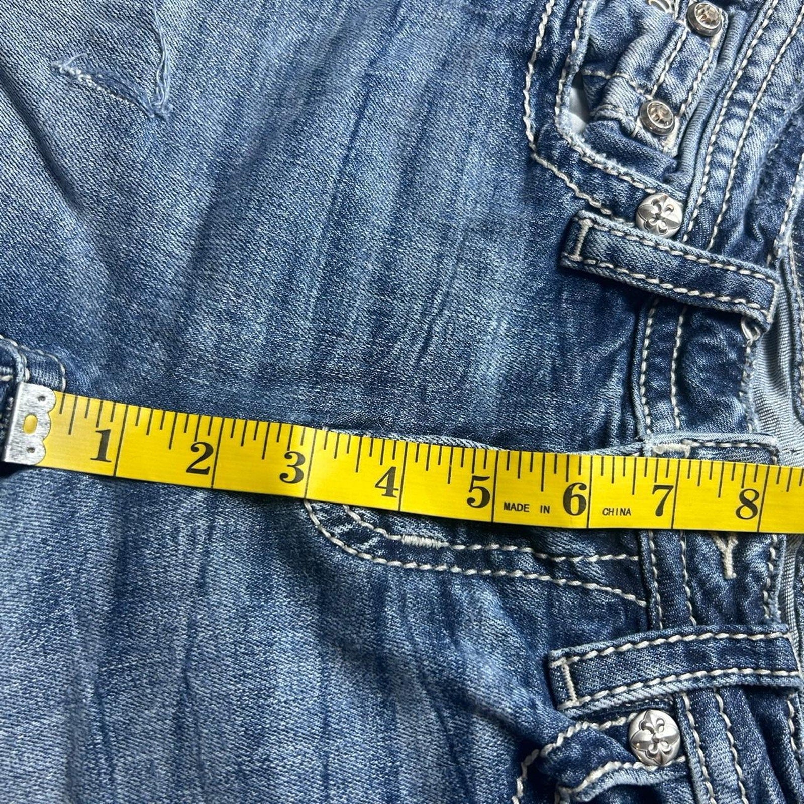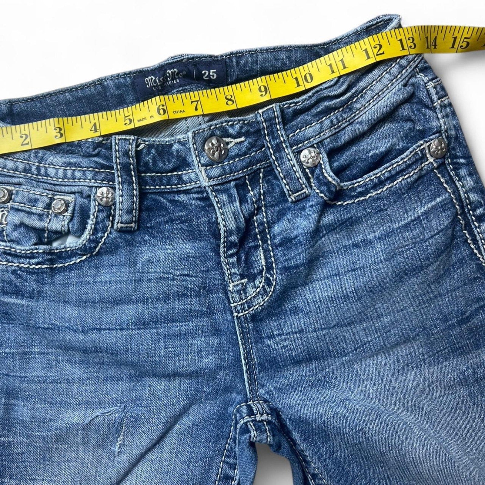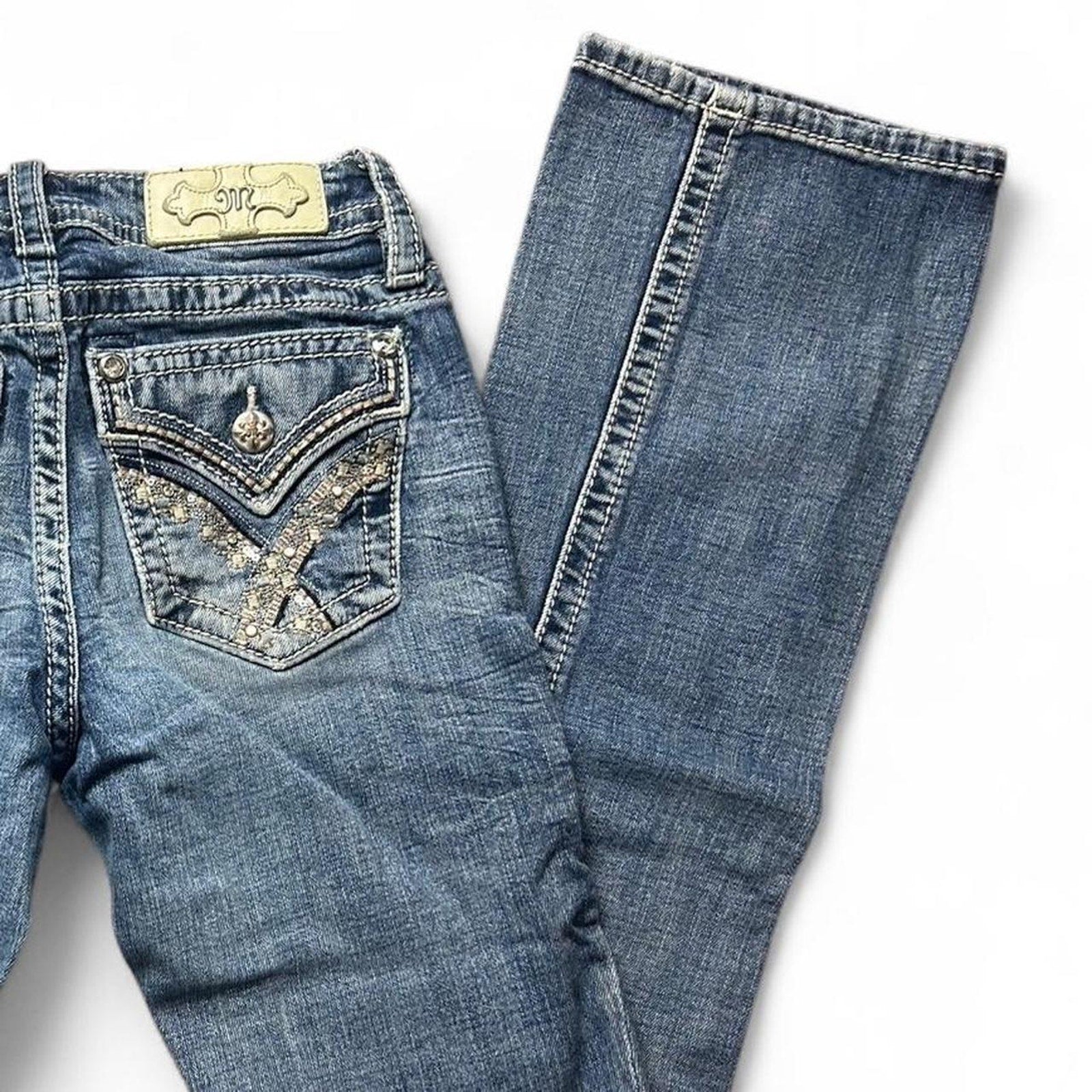 Miss Me low rise flare jeans with rhinestone embellishments and silver studs