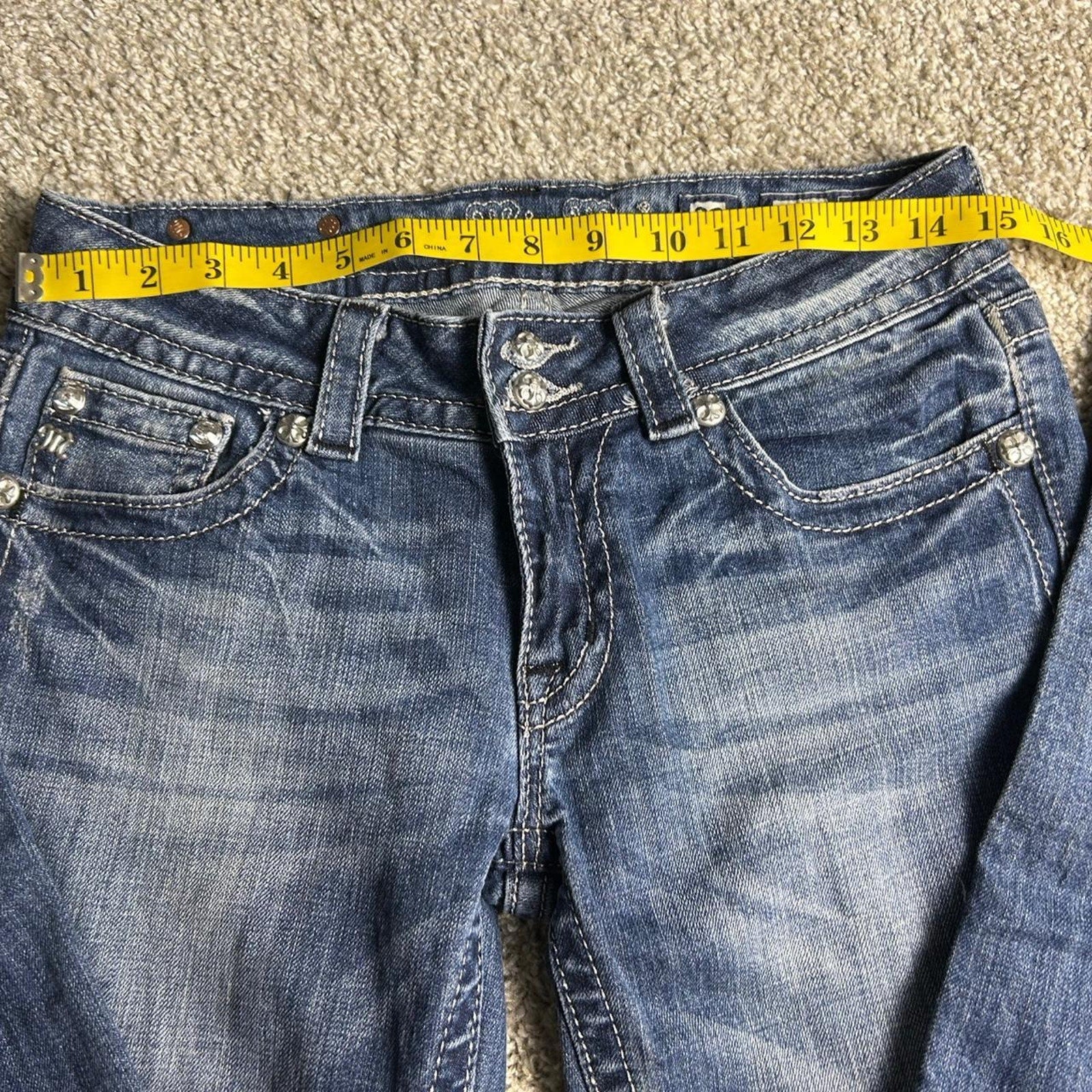 Miss me Navy blue denim bootcut jeans with rhinestone fleur de lis detail