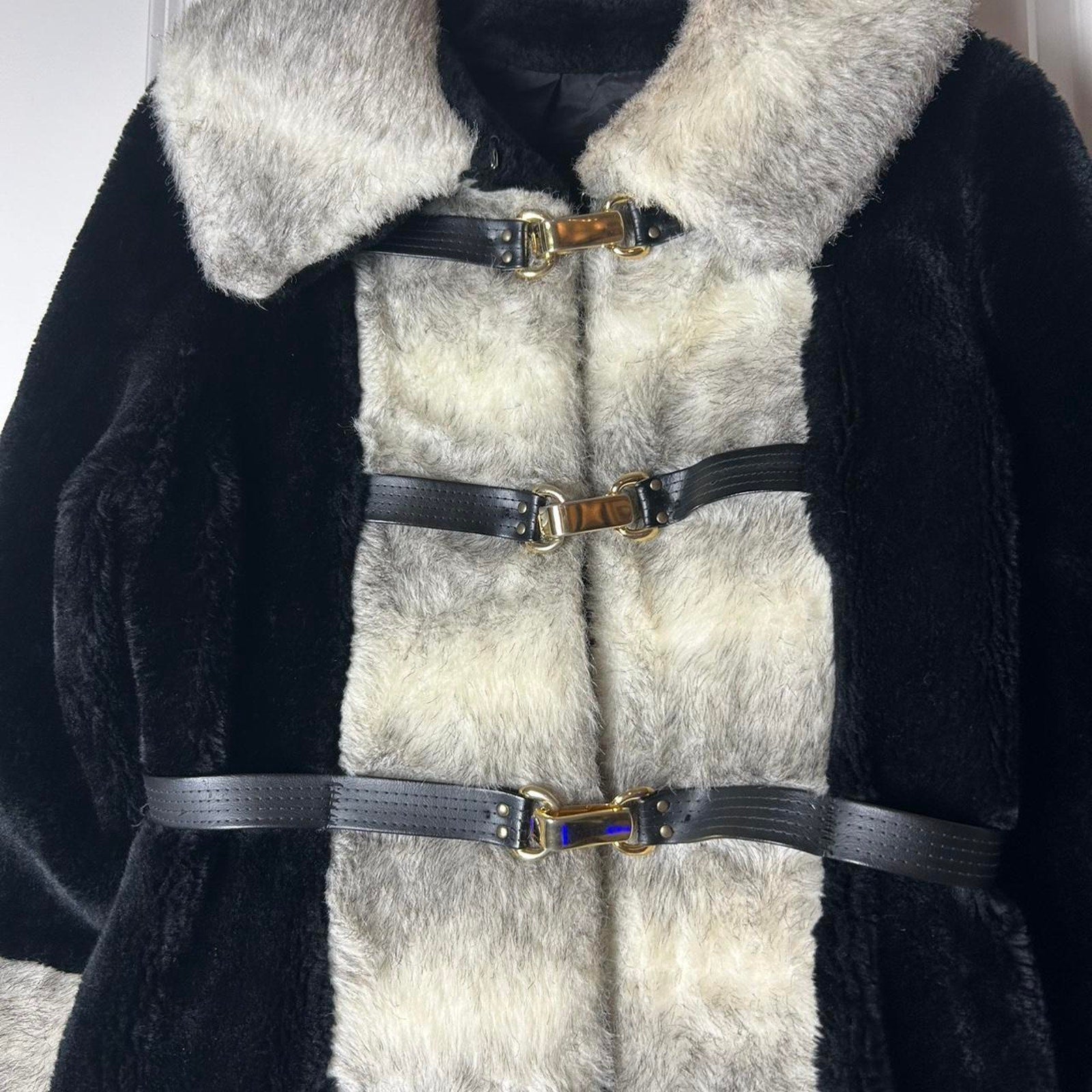 Penny lane afghan coat black and white gold hardware jacket