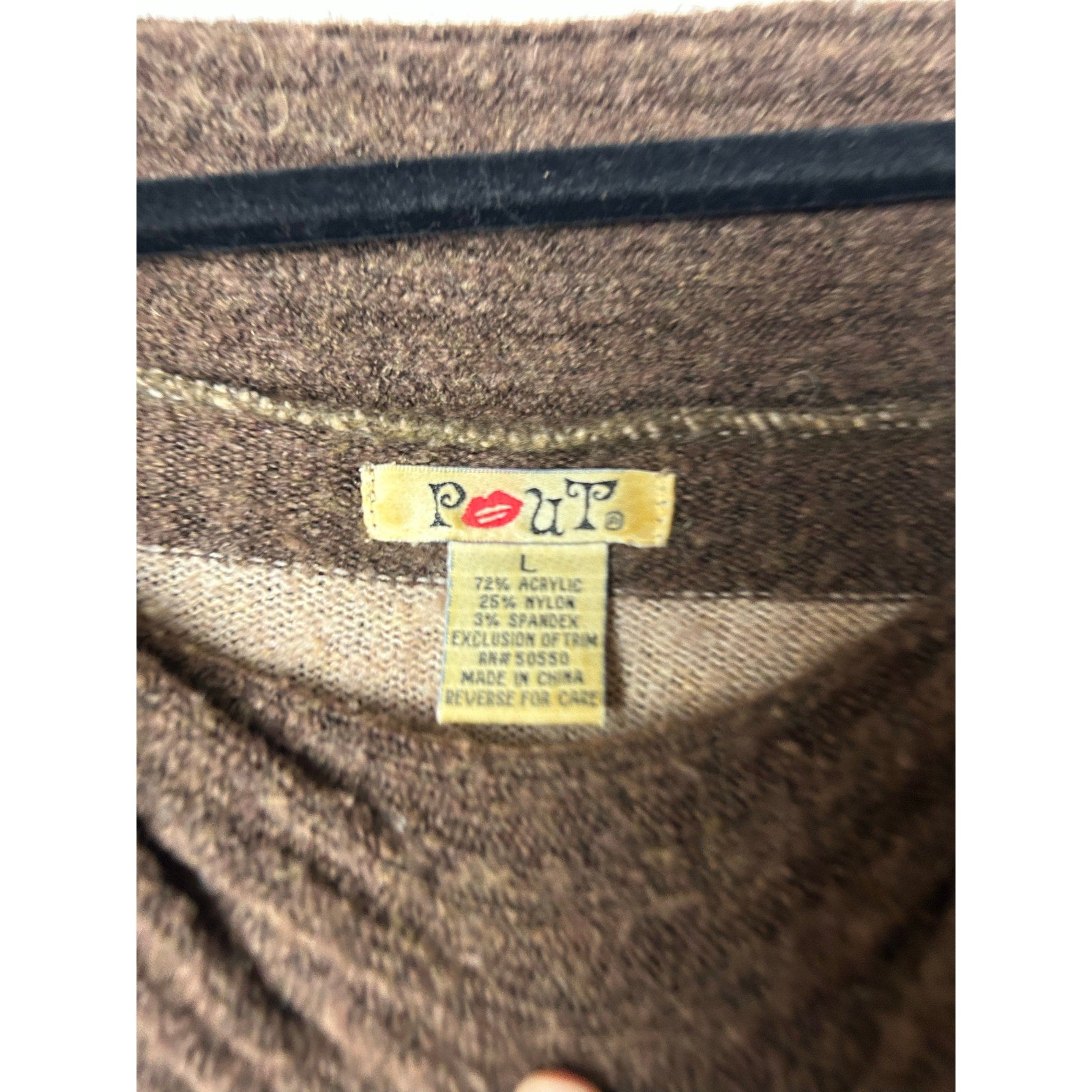 Whether you pair it with your favorite denim jeans for a laid-back look or dress it up with a chic skirt for a night out, this versatile sweater is a true gem. It's a size Large, offering a comfortable and relaxed fit that’s perfect for layering during cooler weather or wearing on its own as a statement piece. Don't miss out on adding this fabulous Y2K-inspired piece to your collection – it's waiting to make you shine!