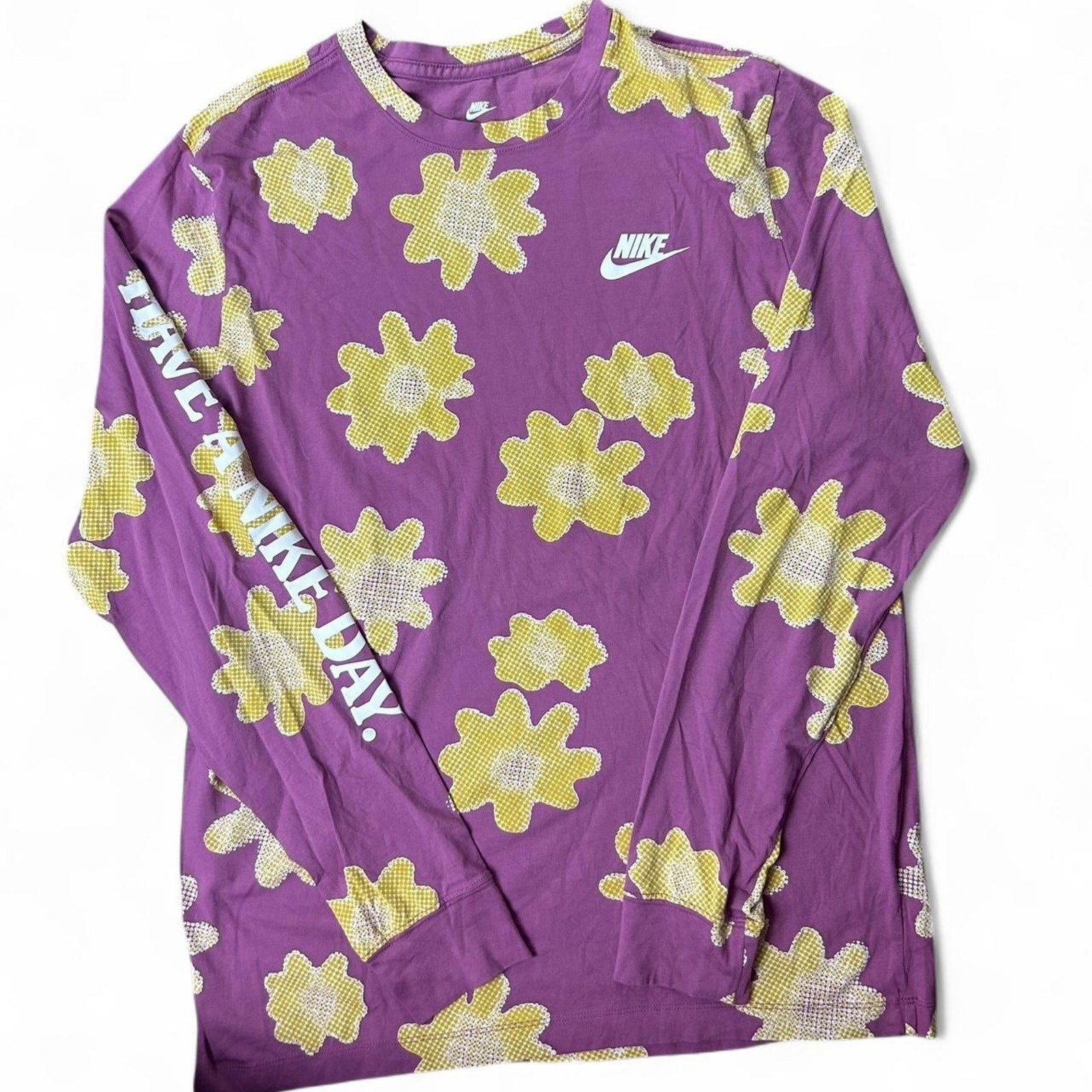 Rare Nike long sleeve floral pixel graphic t-shirt in purple and yellow