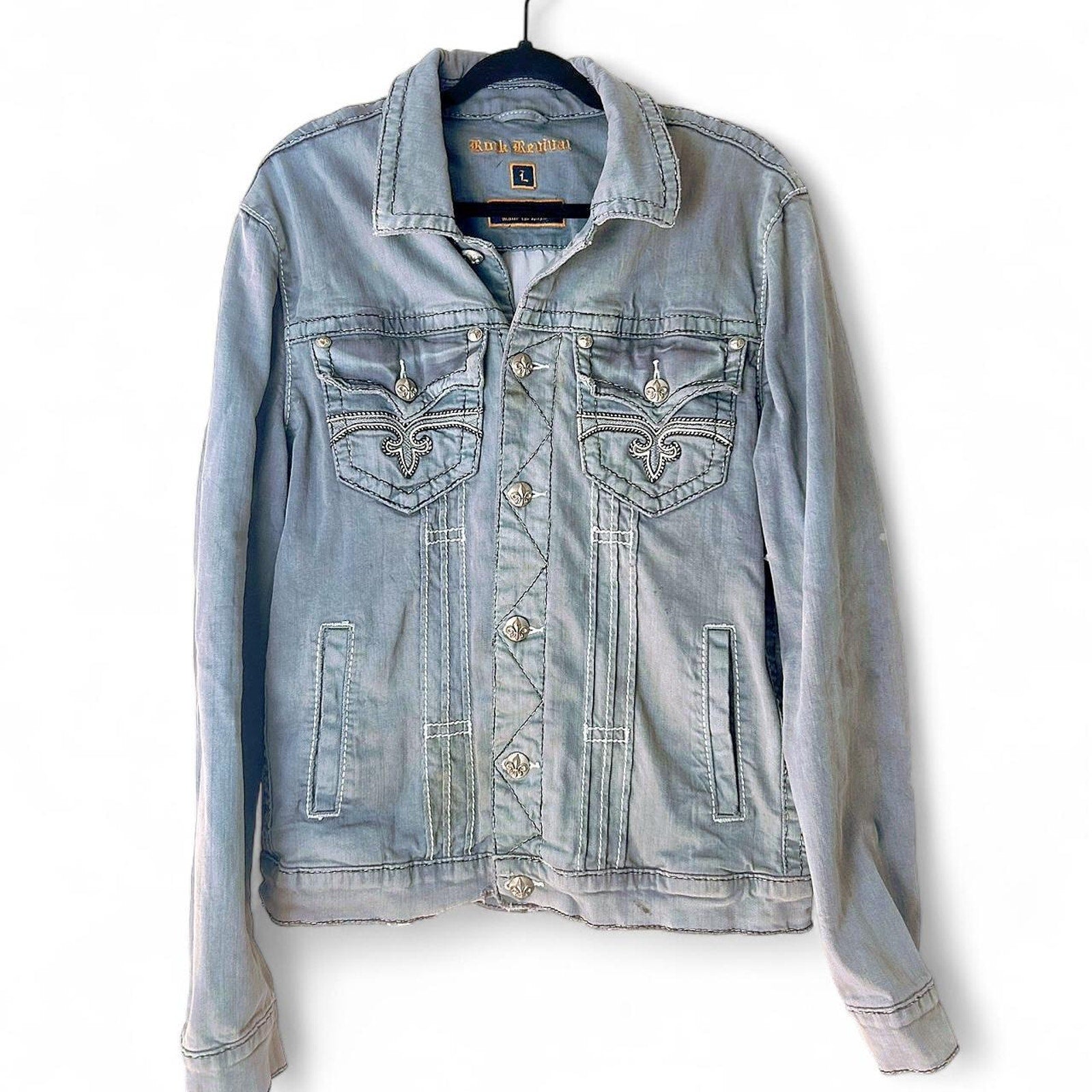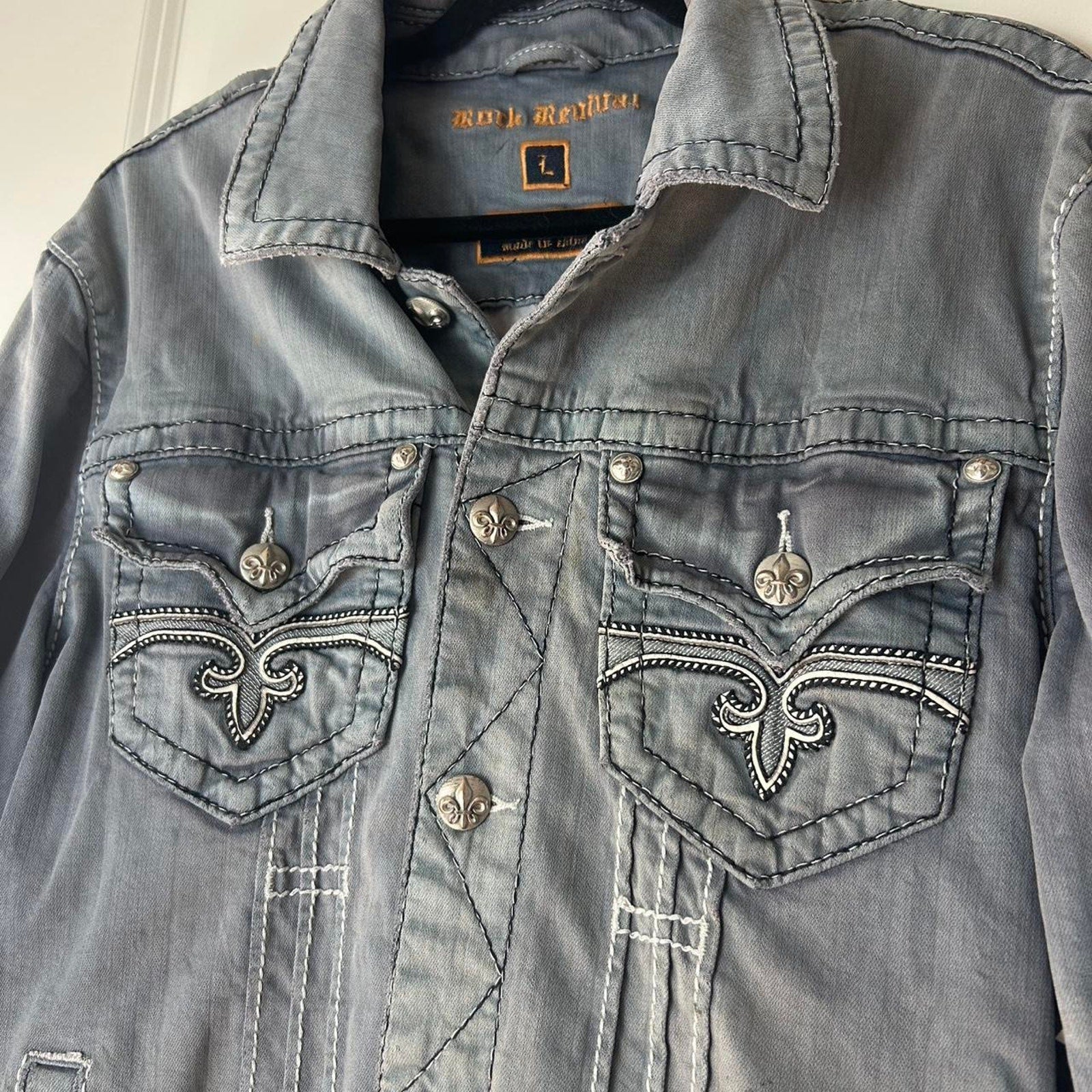 Rare vintage Rock Revival denim jacket in light gray jacket with some added character