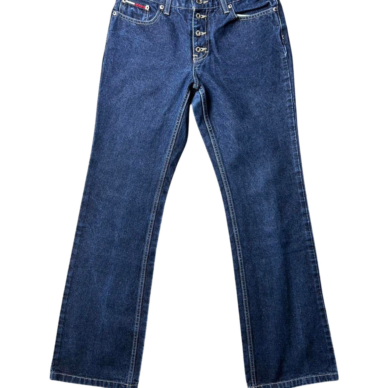 Elevate your denim collection with these classic Tommy Hilfiger jeans! Featuring a comfortable size 28x30 and a versatile mid-wash, these jeans are perfect for everyday wear.