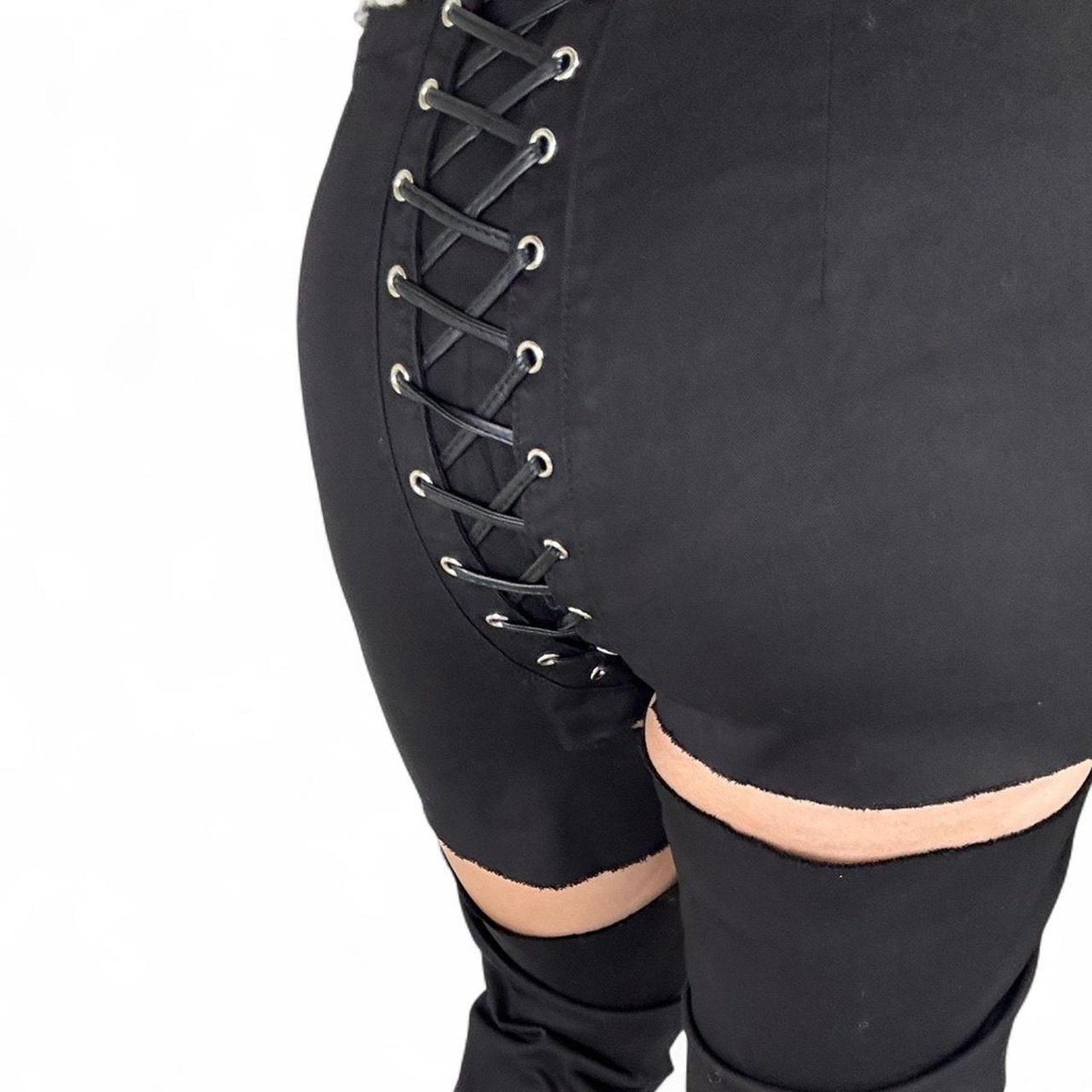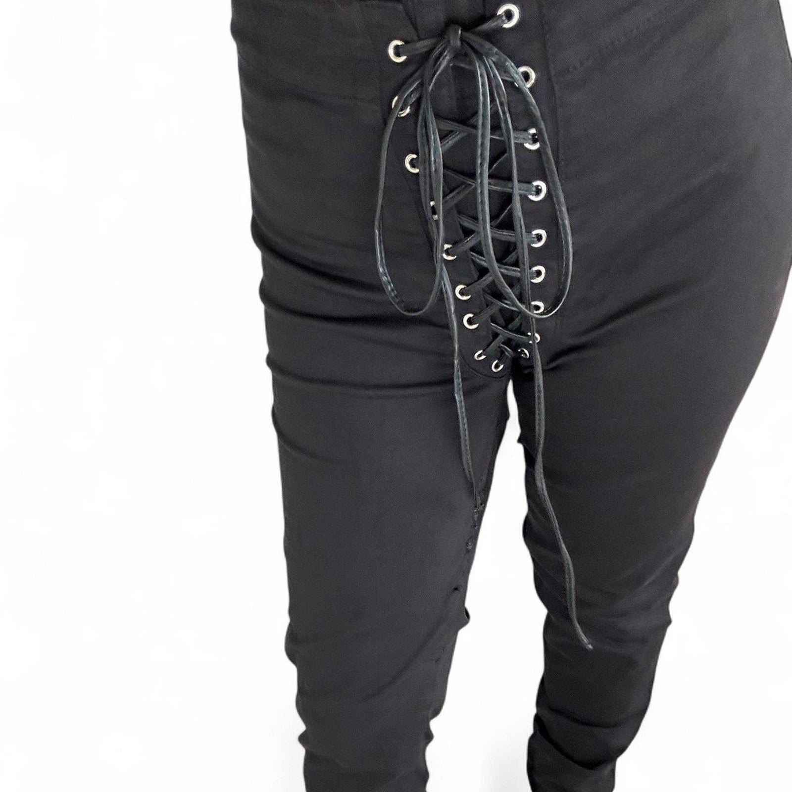 Tripp NYC black lace-up distressed straight-leg pants