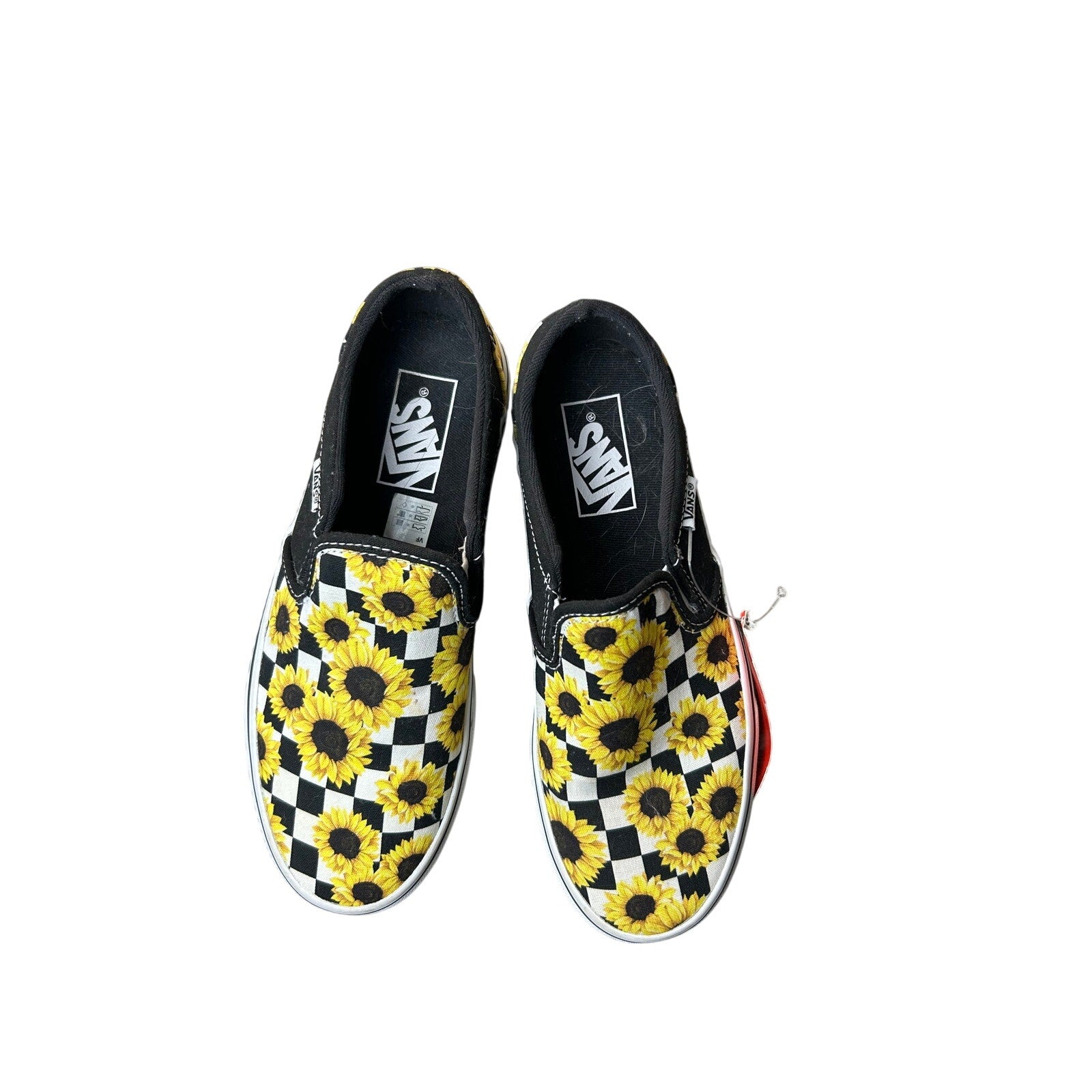 Step into sunshine with these adorable Vans slip-on sneakers! These shoes feature the classic checkered pattern with a fun sunflower twist. Perfect for adding a pop of color to any outfit. They are in excellent condition and ready for a new adventure!