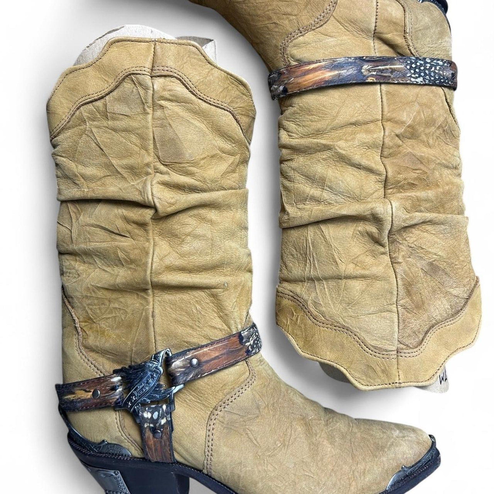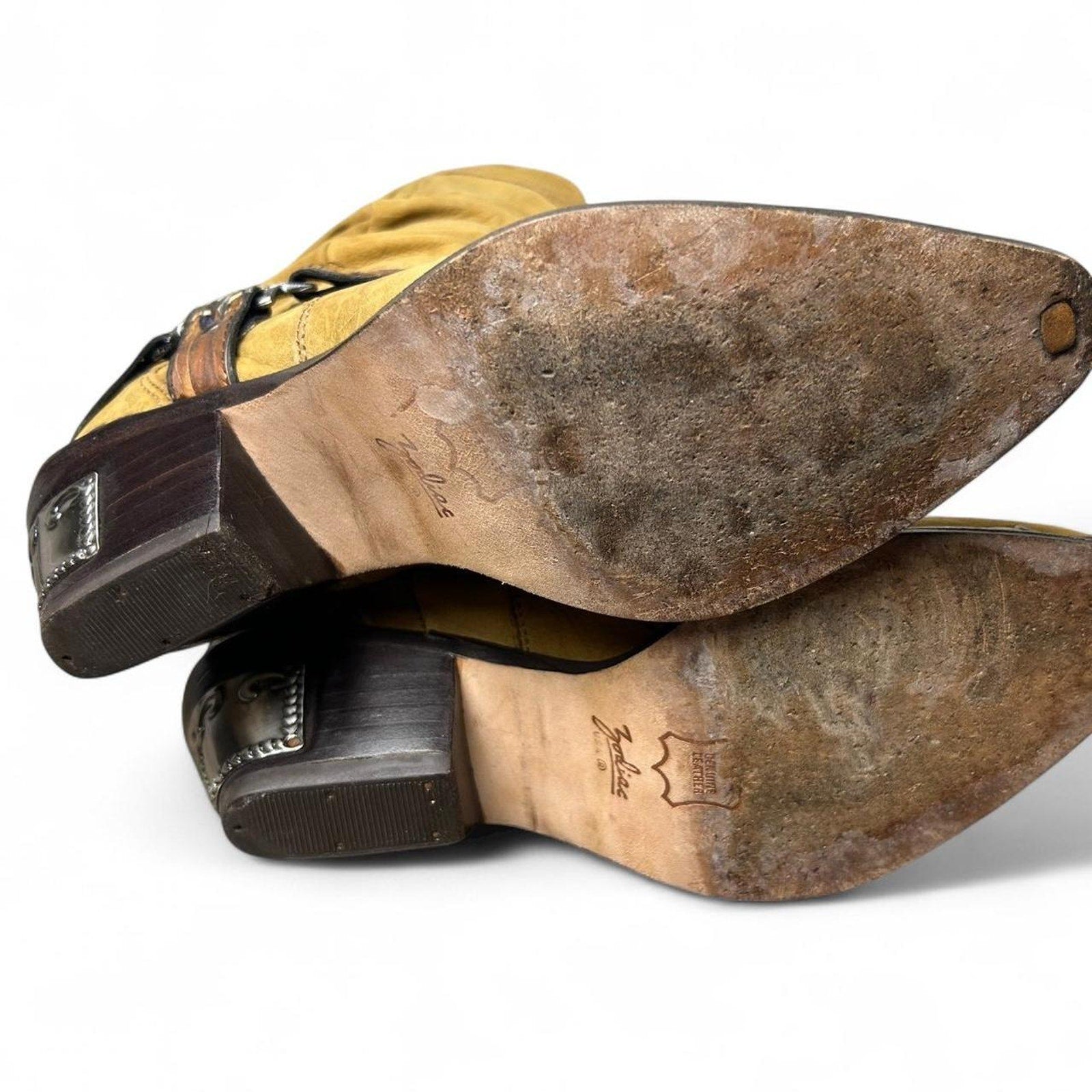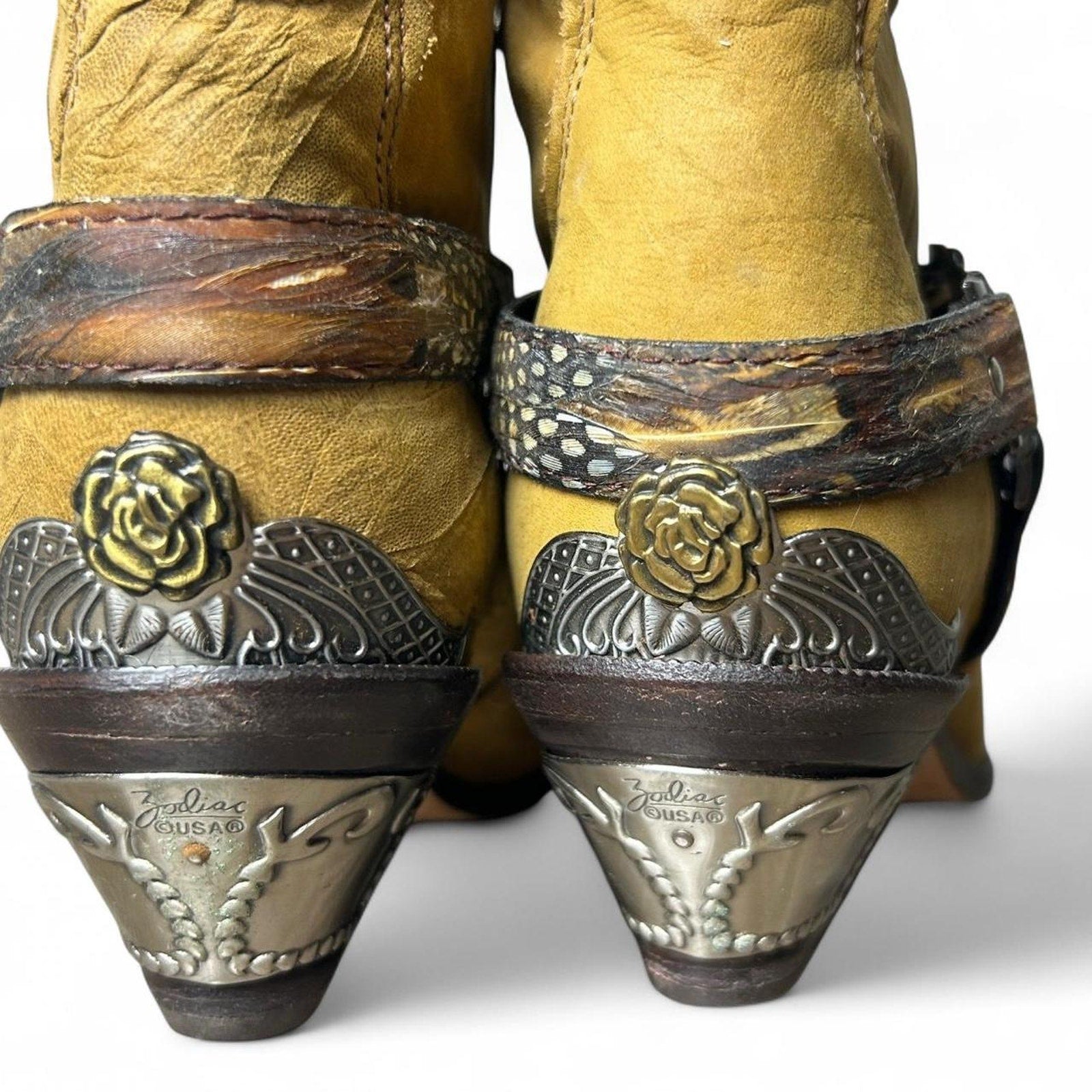 Vintage Zodiac Tan, brown, brass, and chrome western cowboy boots