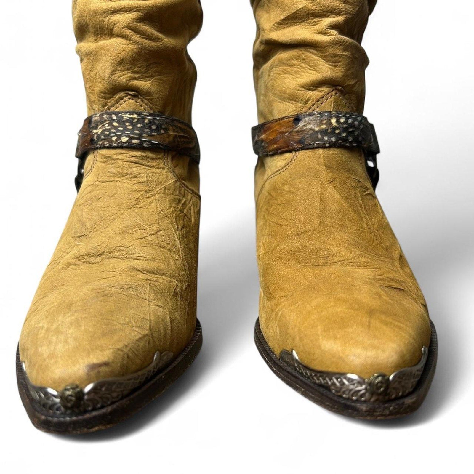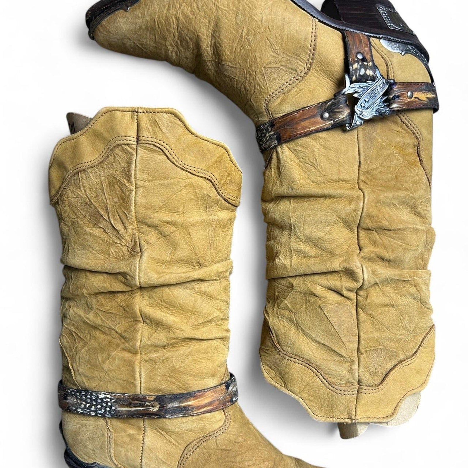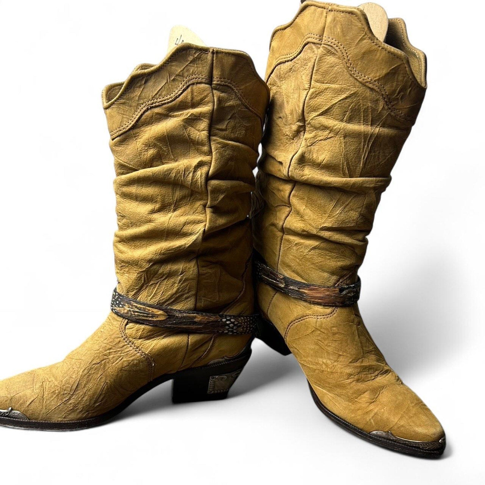 Vintage Zodiac Tan, brown, brass, and chrome western cowboy boots
