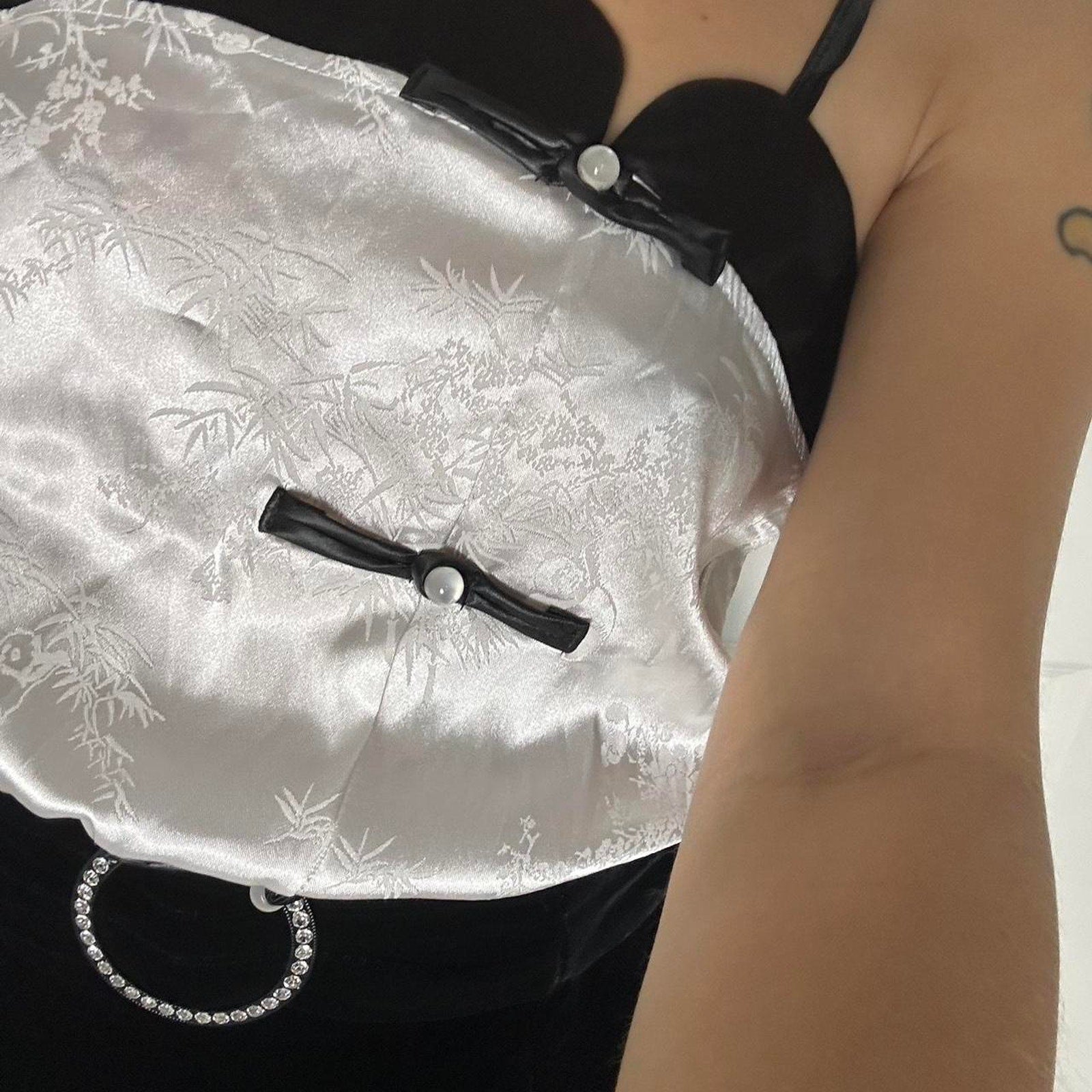 White and black satin top