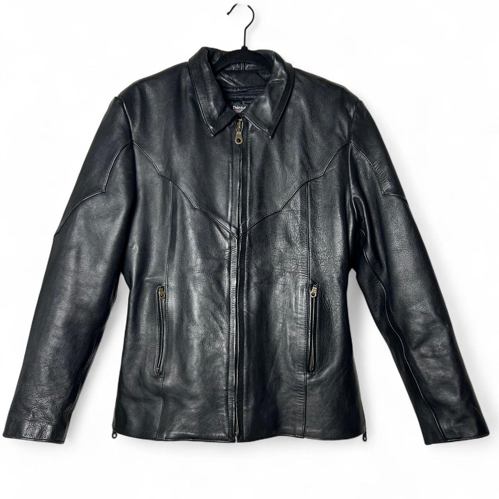 Wild ride insulated leather jacket with western vibe, zipper closure, and two front pockets