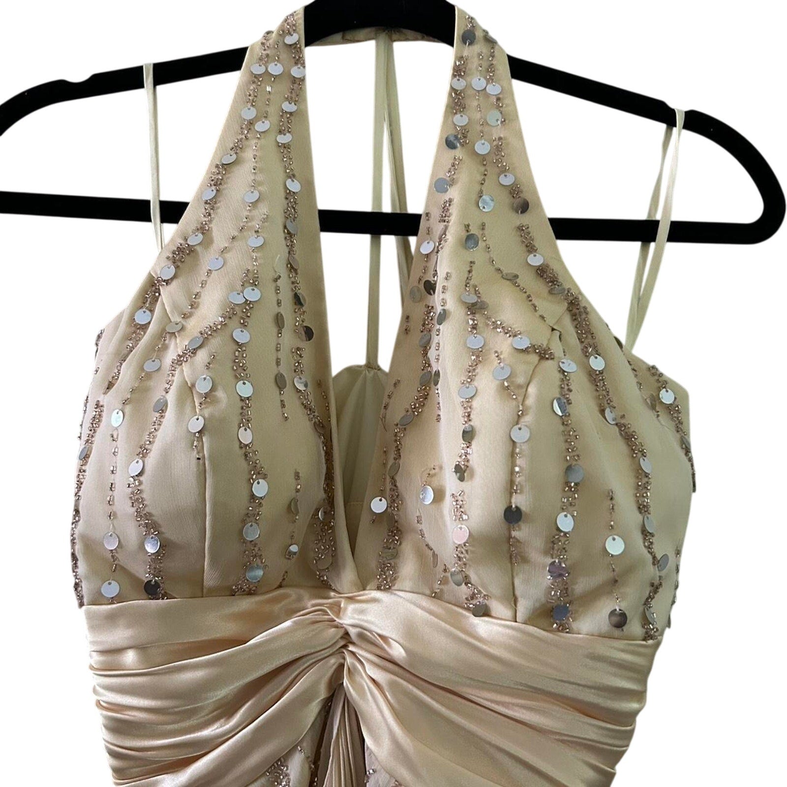 tunning Y2K gold sequin halter dress ✨